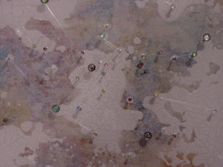 The artsit utilises a rather interesting material, hair. The maps made of hair are installed on a window pane of a gallery space. She also uses her own clothes to create a world map.